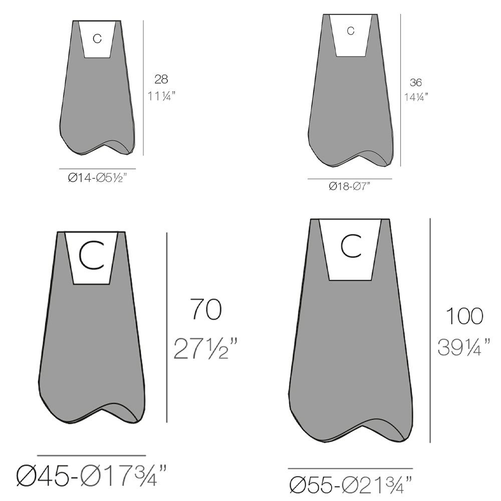 Macetero Pal con iluminación interior LED opcional, fabricado en resina de polietileno mediante moldeo rotacional con doble pared, 100% reciclable. Producto apto tanto para interior como exterior.