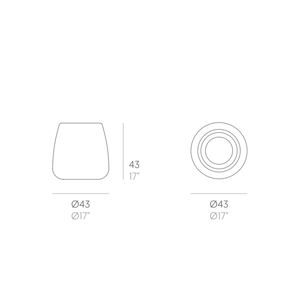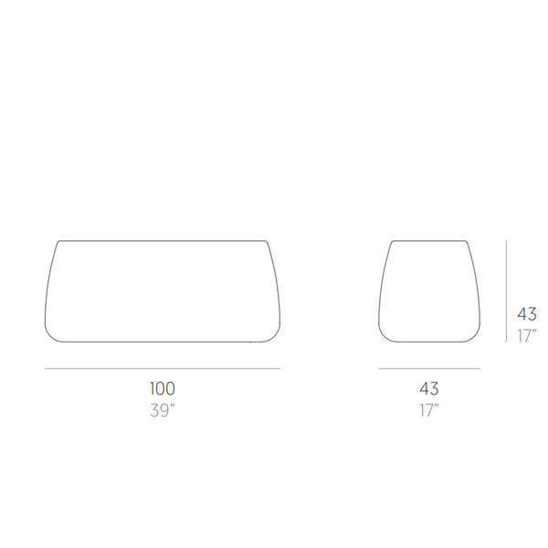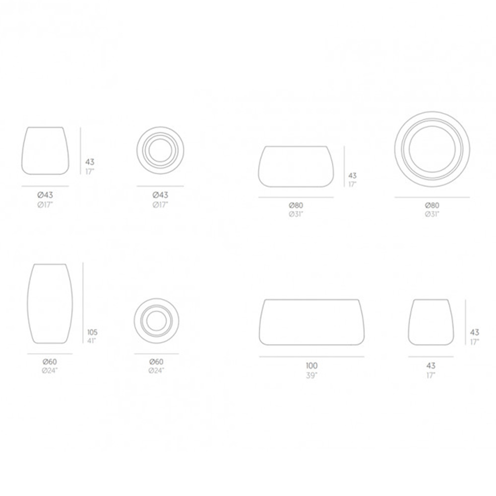 Su diseño se destaca por sus formas redondeadas de líneas orgánicas. Están elaborados con polietileno rotomoldeado 100% reciclable con un acabado lacado texturizado, apto para soportar el clima de intemperie tanto en un terraza, jardín, patio o junto a la piscina.