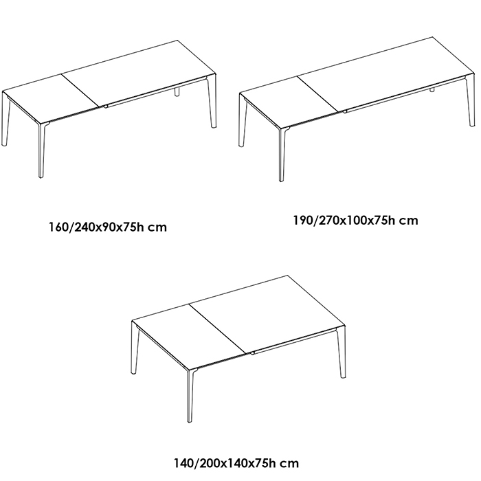 Mesa cuadrada y rectangular extensible con estructura de acero lacado. Con sobre de SuperCerámica y SuperMármol.