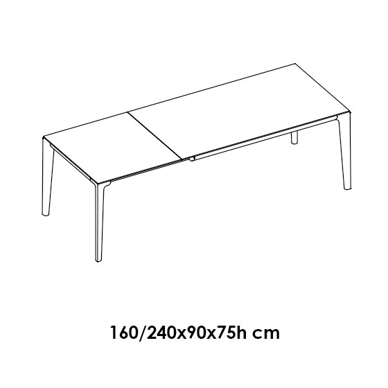 Mesa extensible con estructura de acero lacado y sobre en SuperCerámica o SuperMármol.