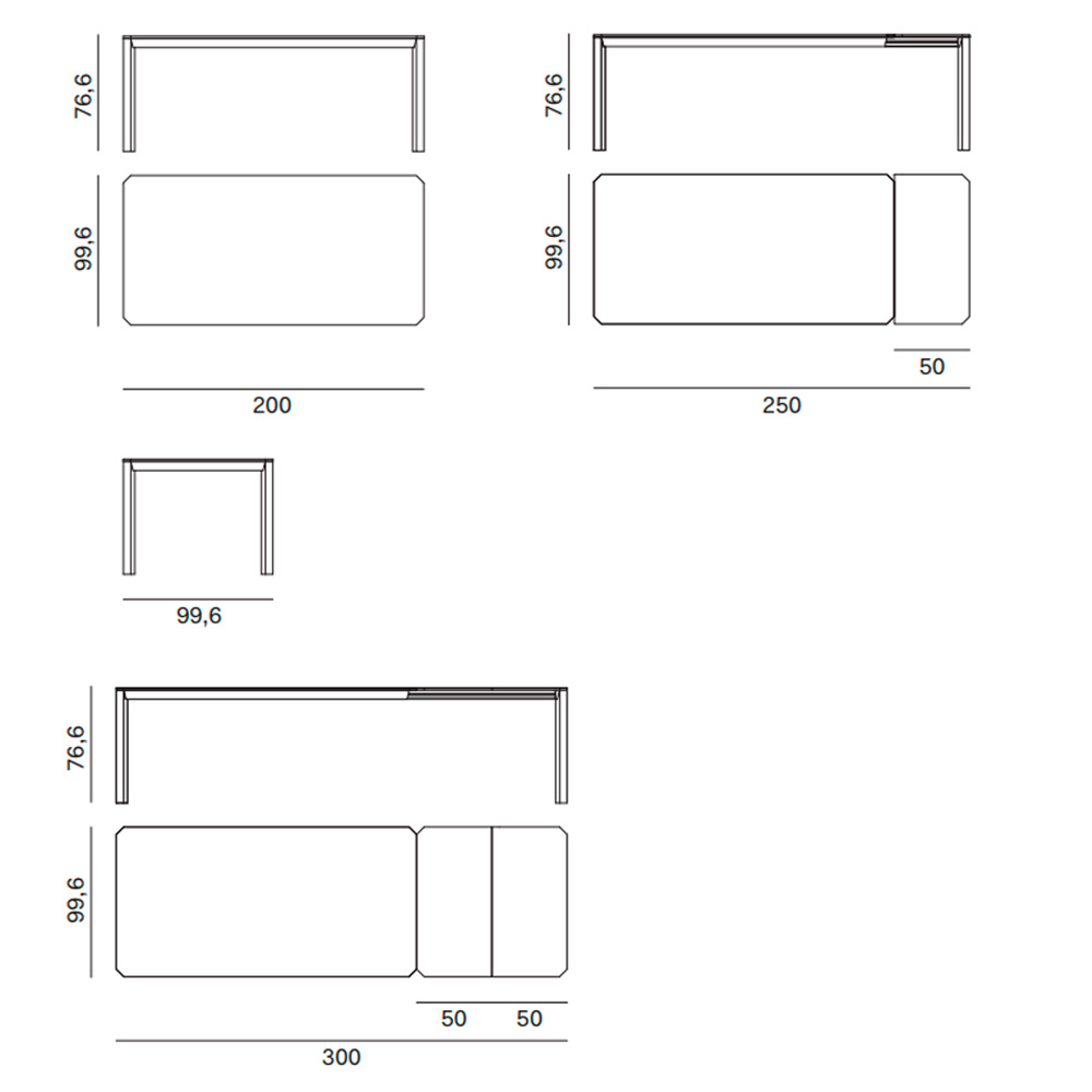 Dimensiones: 200/250/300x99,6x76,6h cm.