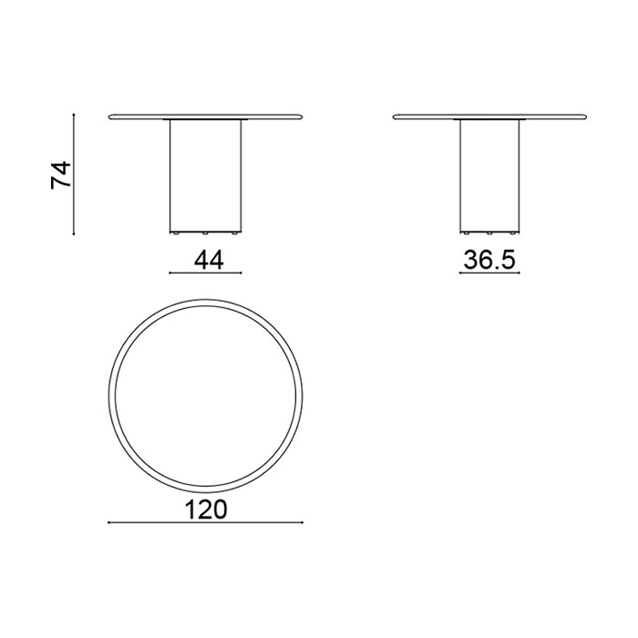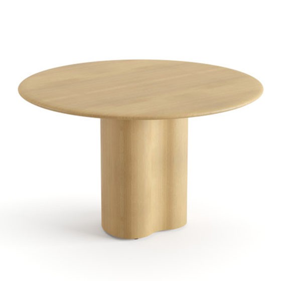 Mesa con base central y sobre redondo en madera de roble. Dimensiones: Ø120x74h cm.