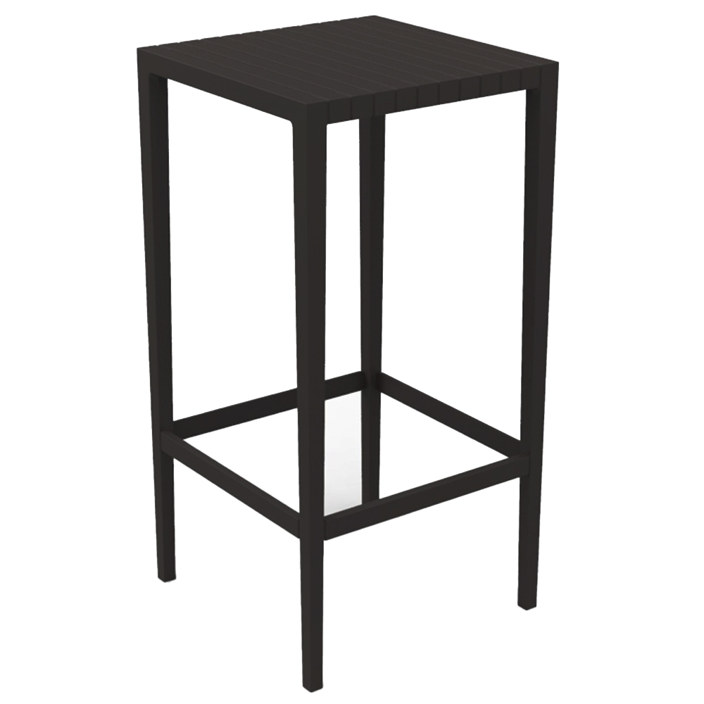 Mesa alta fabricada en polipropileno por inyección con gas air moulding y reforzada con fibra de vidrio. Disponible en varios colores. Apto para uso interior y exterior.