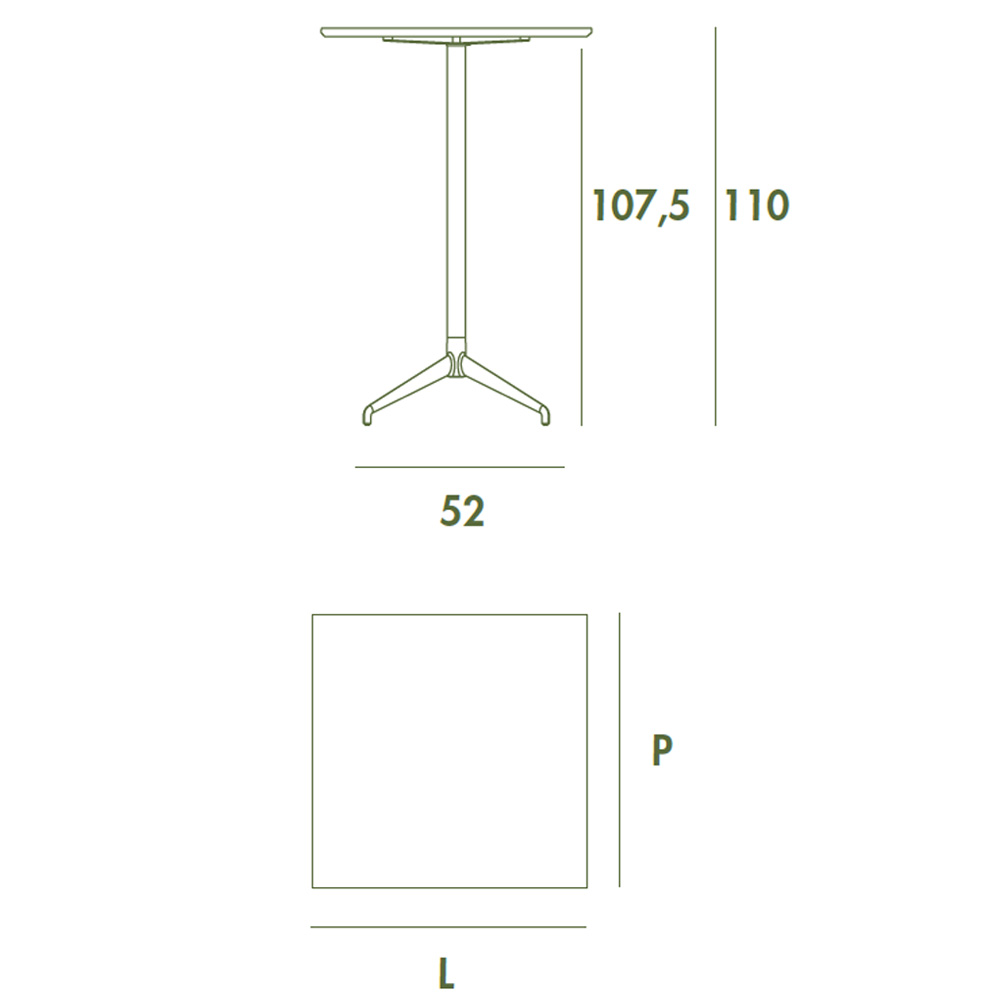 Alis es una moderna mesa de exterior, diseñada para su uso en comedores, bares y restaurantes. Su sobre cuadrado está hecho en cerámica y su base en aluminio lacado, disponible en varios acabados.