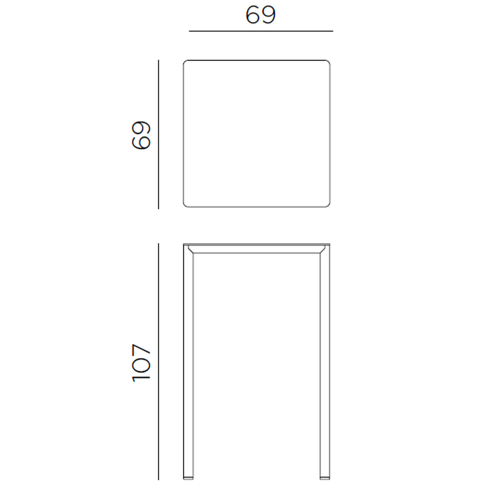 Mesa alta de aluminio y HPL Solid Core. Dimensiones: 69x69x107h cm.