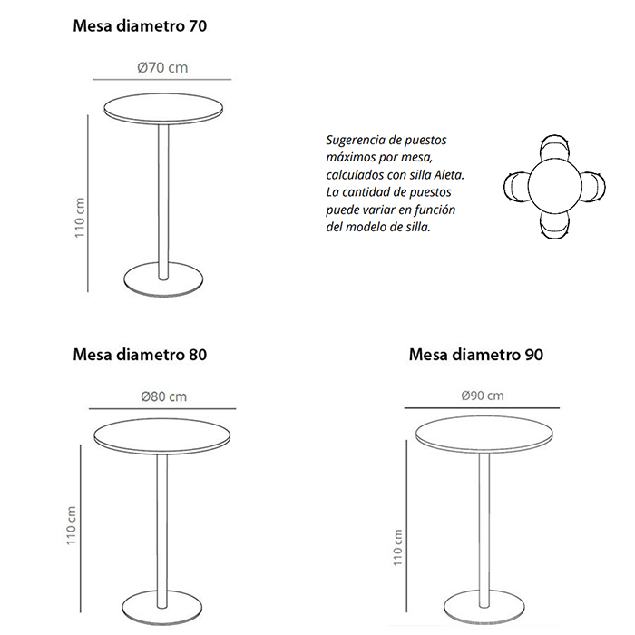 Mesa alta redonda en base de acero con sobre en melamina o laminado. Diseño: Studio VCCB.