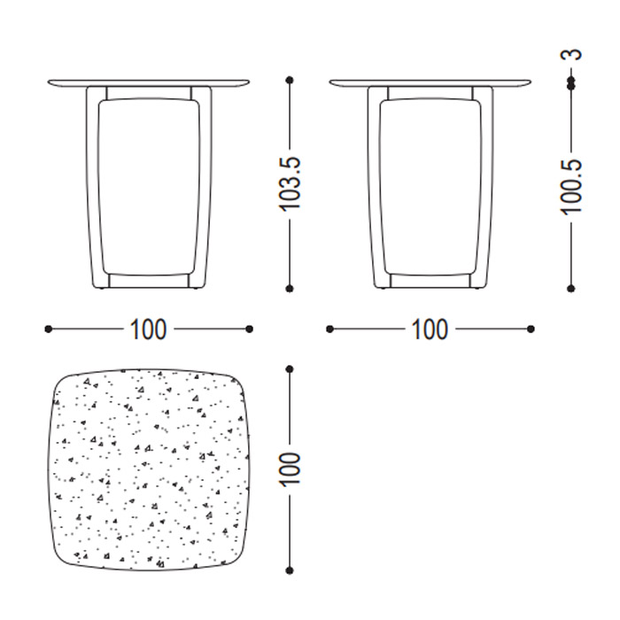 Mesa alta con estructura de madera torneada y sobre de mármol. Dimensiones: 100x100x103,5h cm.
