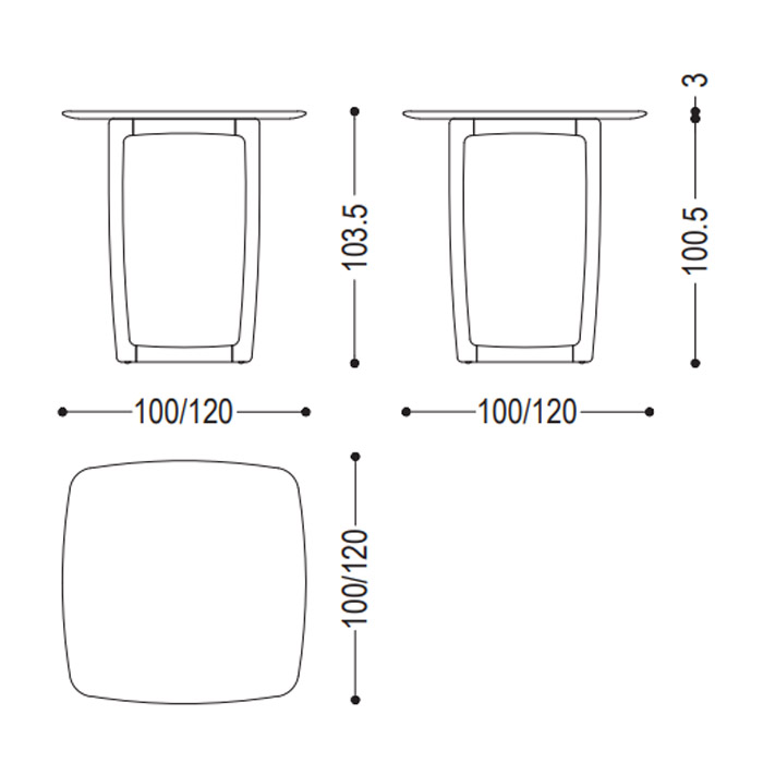 • Base de forma cuadrada combinada con un tablero de madera con cantos redondeados
