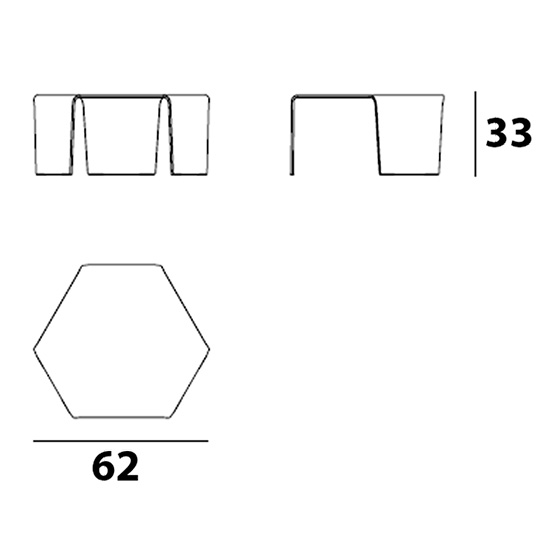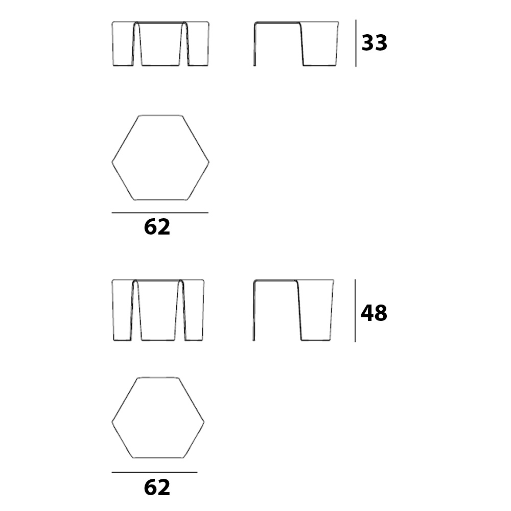 La mesa auxiliar 3 Feet de Sovet Italia tiene un diseño hexagonal disponible en acabados de cristal extraclaro o lacado.
