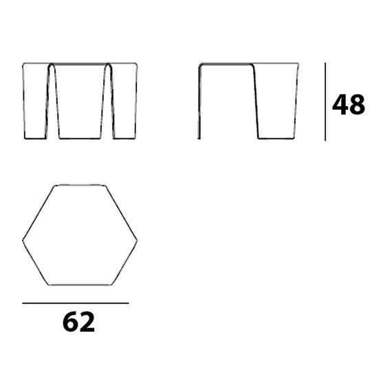 Mesa auxiliar hexagonal. Diseño de Gianluigi Landoni.