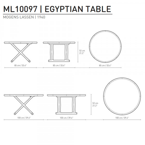 La mesa auxiliar egipcia ML10097 fue diseñada por Mogens Lassen para plegarse fácilmente para el almacenamiento con el lanzamiento de un pequeño pestillo deslizante de latón debajo de la mesa.