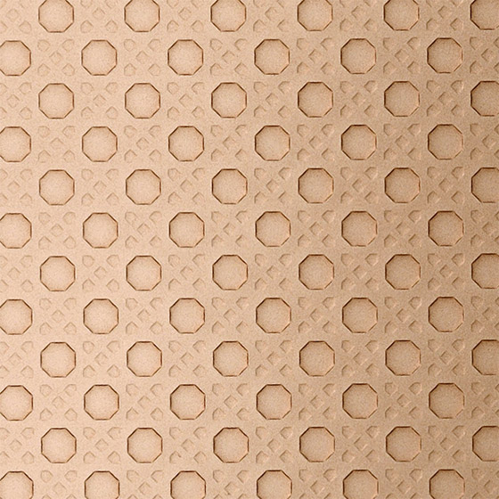 La mesa auxiliar Cannage del fabricante italiano Fiam tiene un sobre redondo hecho en vidrio texturizado templado y fundido en alta temperatura de 10 mm, y una estructura de madera maciza color tabaco.