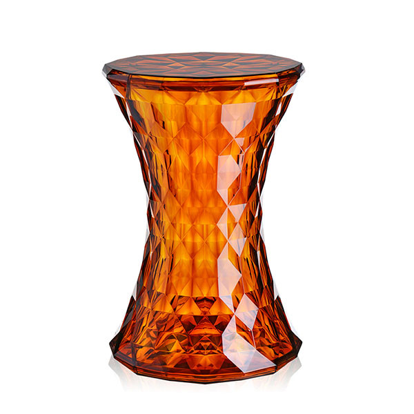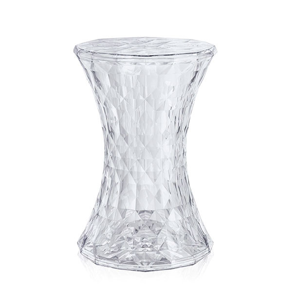 Mesita auxiliar / Taburete de policarbonato estilo diamante. Dimensiones: Ø30x45h cm.