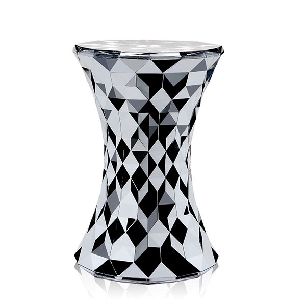 Stone es un taburete de forma esencial, lineal y simétrica que recuerda la de un reloj de agua pero cuya superficie tiene un aspecto completamente extraordinario: irregular, constituida por muchas caras geométricas reflectantes que crean un efecto de luz del que nace un juego de colores de lo más particular que hacen que resulte similar a un diamante.