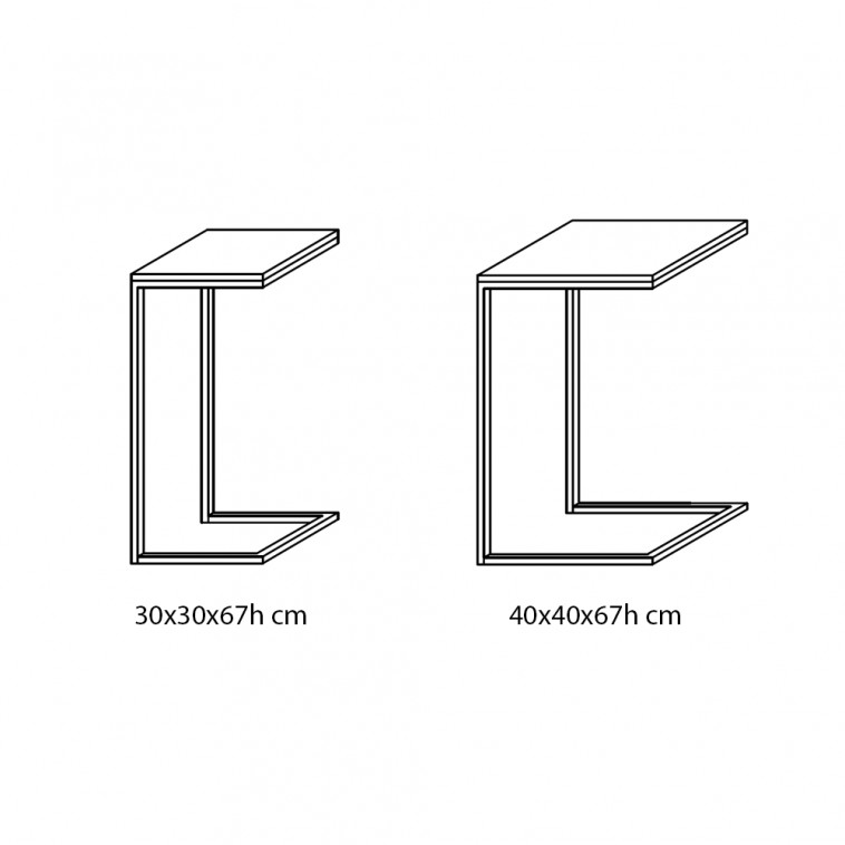 Mesa auxiliar con estructura de acero lacado y sobre de madera o mármol natural.