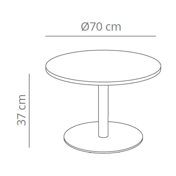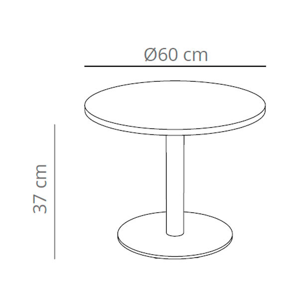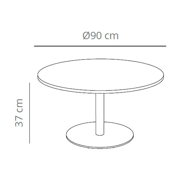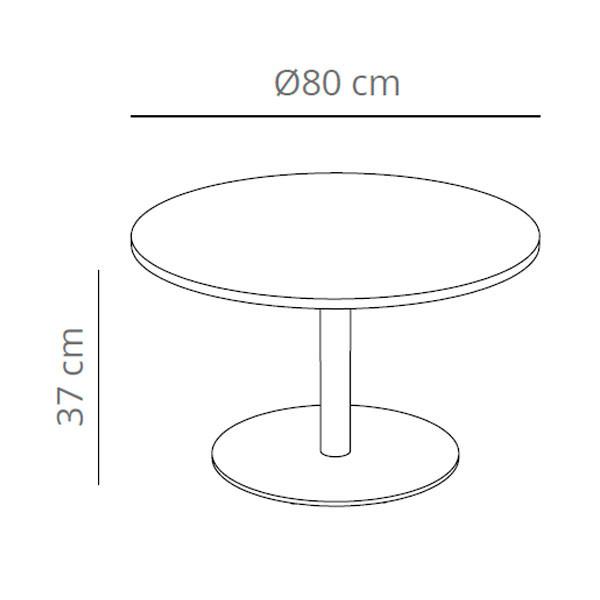 Mesa auxiliar redonda en base de acero y pie redondo. Disñeo: Studio VCCB.