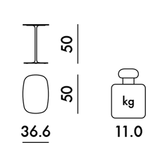 Mesa auxiliar redondeada con sobre de vidrio templado. Diseño por Piero Lissoni