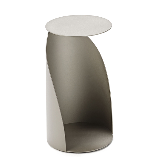 Mesa auxiliar con estructura de acero barnizado. Diseño de Paolo Cattelan.