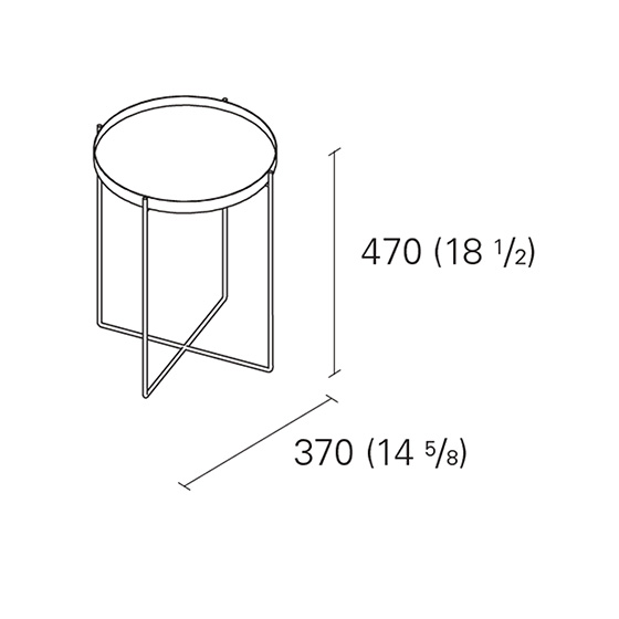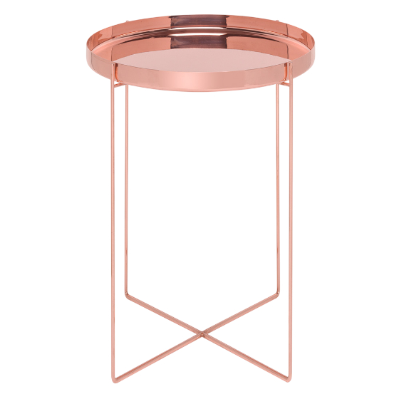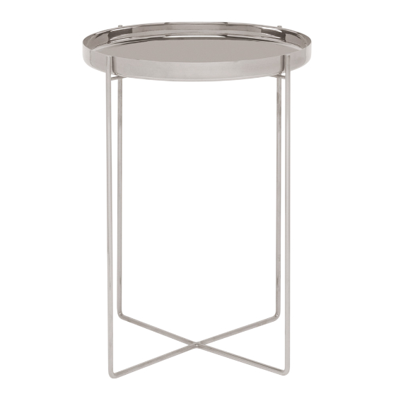 Mesa auxiliar de metal de bandeja independiente. Diseño de Phillip Mainzer.