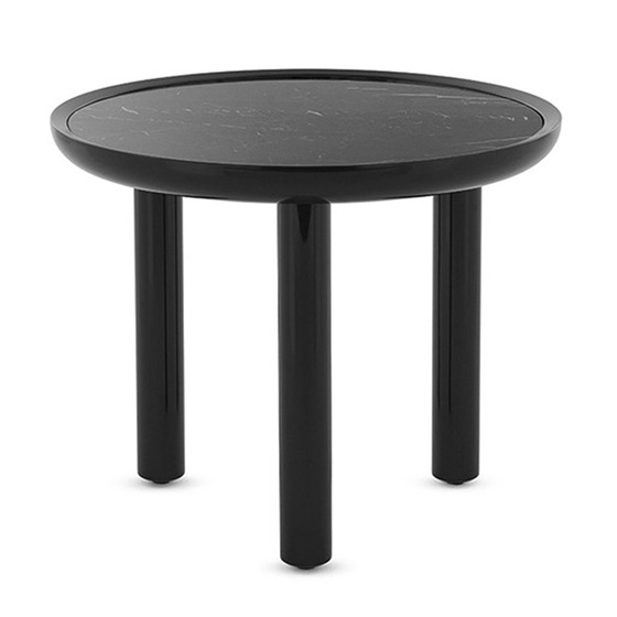 Mesa auxiliar en madera de haya con sobre de gres acabado mármol. Dimensiones: Ø60x50h cm