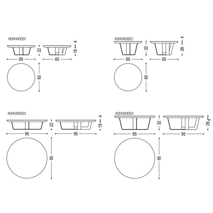 Mesa pequeña redonda con tablero de madera maciza de listones encolados y base de hierro. Disponible en diferentes tamaños y apilable.