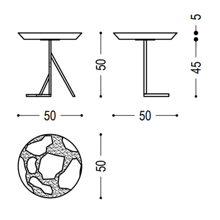Mesa auxiliar con sobre de madera de kauri y resina, patas asimétricas. Dimensiones: Ø50x50h cm.