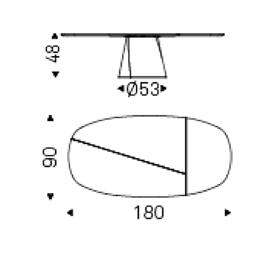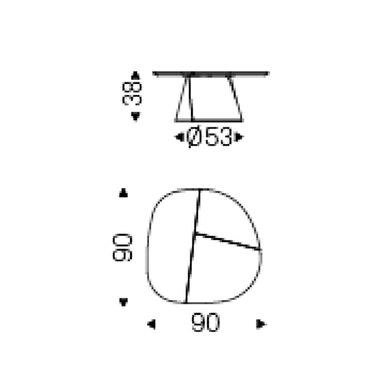 La base cónica, formada por placas de acero superpuestas con cortes diagonales, aporta estabilidad y una silueta ligera. El sobre de madera, con detalles de encastre e inserciones en contraste, define el carácter de la pieza y refuerza su identidad dentro del conjunto.