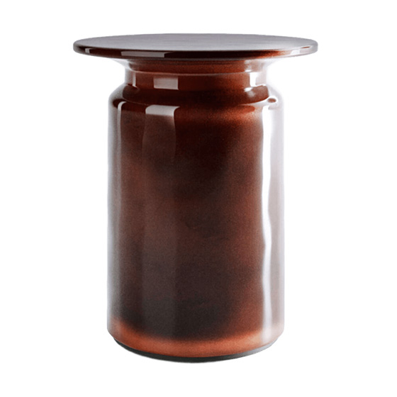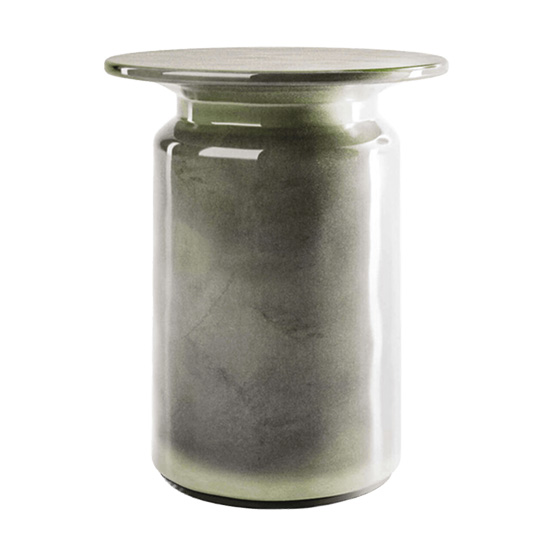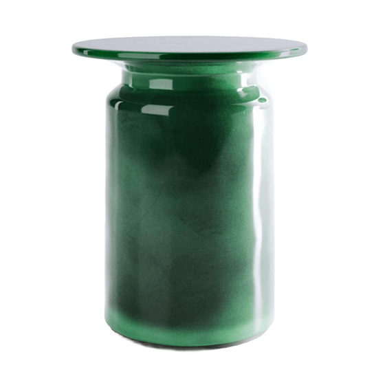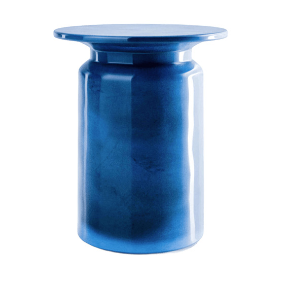 La mesa auxiliar Panarea está fabricada completamente en cerámica esmaltada brillante, moldeada mediante la técnica de colado. Este proceso consiste en verter una mezcla fluida de arcilla, conocida como barbotina, dentro de un molde de yeso. El molde absorbe el agua, formando una capa espesa de arcilla en su interior.