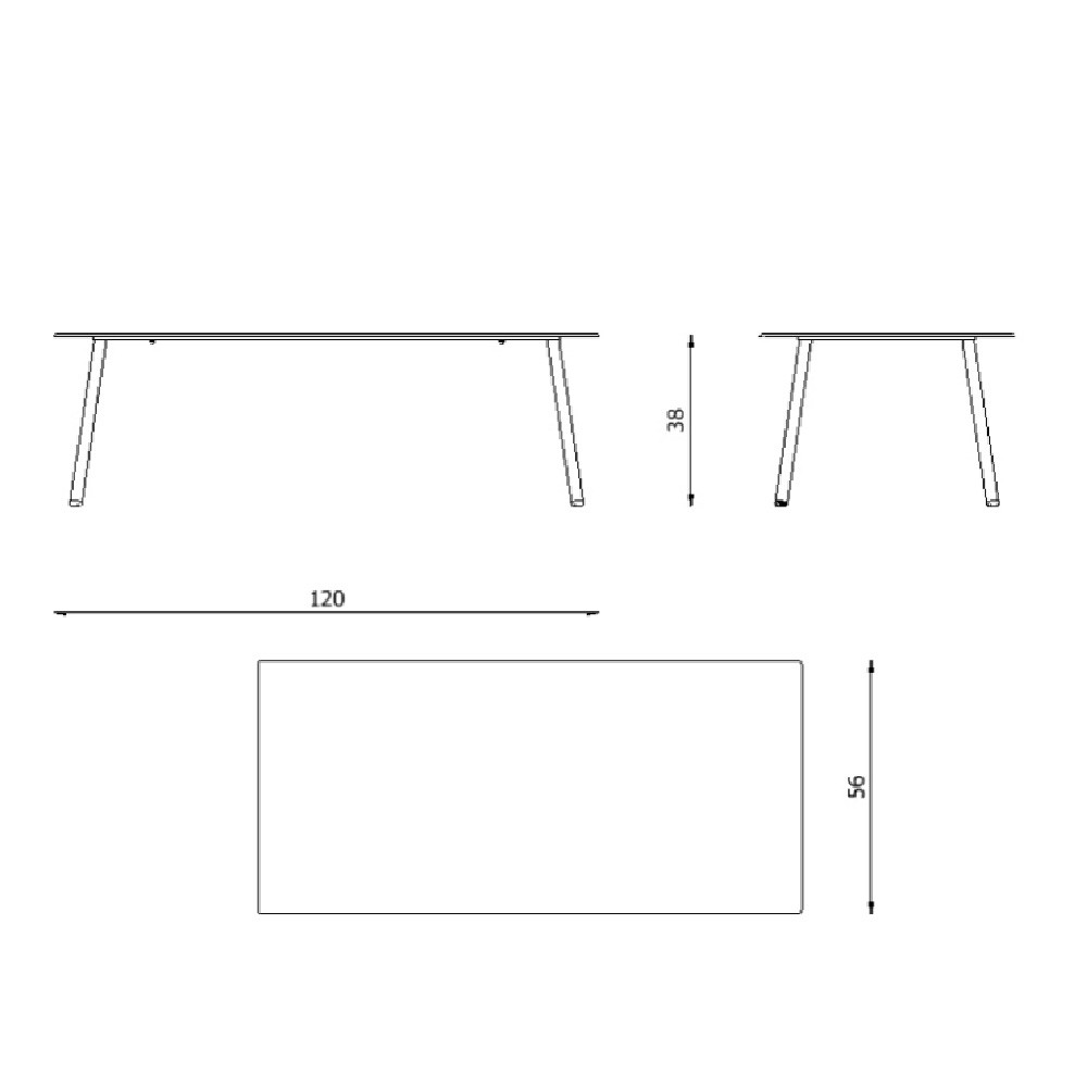 Mesa baja cuadrada o rectangular con estructura y sobre de aluminio lacado.