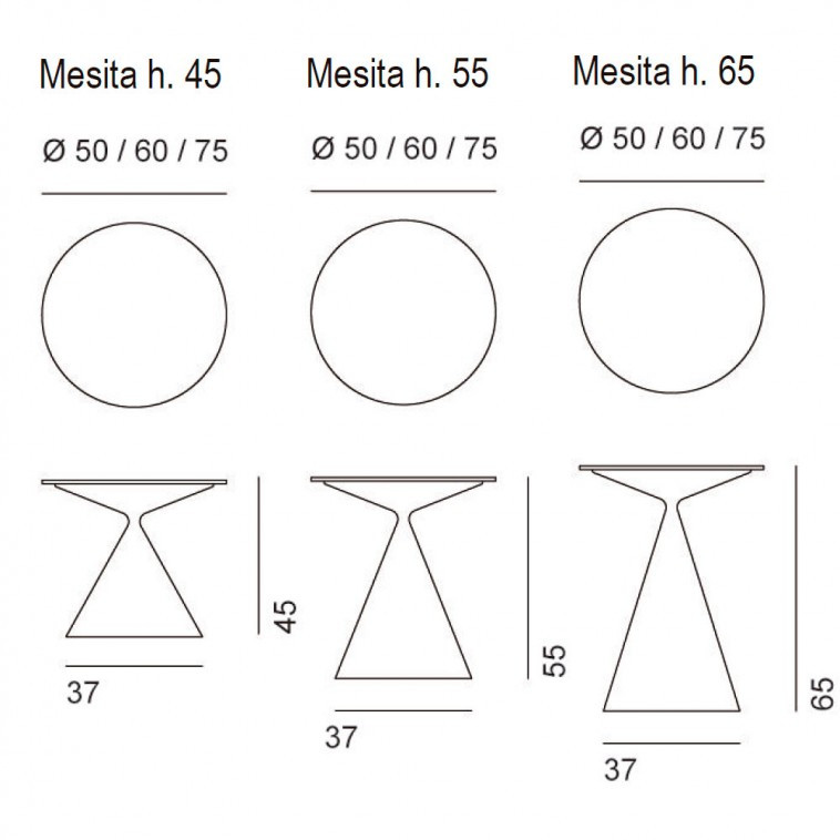 Una mesita para terrazas muy original que resulta de combinar amplios volúmenes geométricos creando una pieza especial por su simplicidad. Dos conos de diferentes formas se encuentran en sus vértices opuestos, desafiando a la gravedad y creando un equilibrio aparentemente inestable, pero dando forma a la más clásica de las mesas redondas.