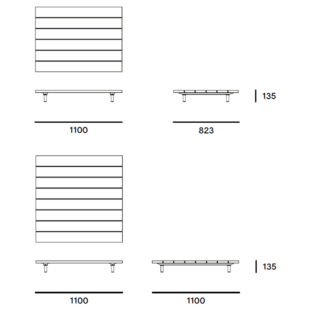Una mesa centro de diseño. proponga su disposición de asientos en el exterior en torno a esta encantadora mesa moderna centro también de forma cuadrada. La mesa tiene un diseño muy minimalista y parece flotar sobre sus patas de acero galvanizado casi invisibles. Su magnífico revestimiento de listones de madera dura de iroko o de Hellwood añade calidez y una sensación de naturalidad al conjunto de salón Walrus.