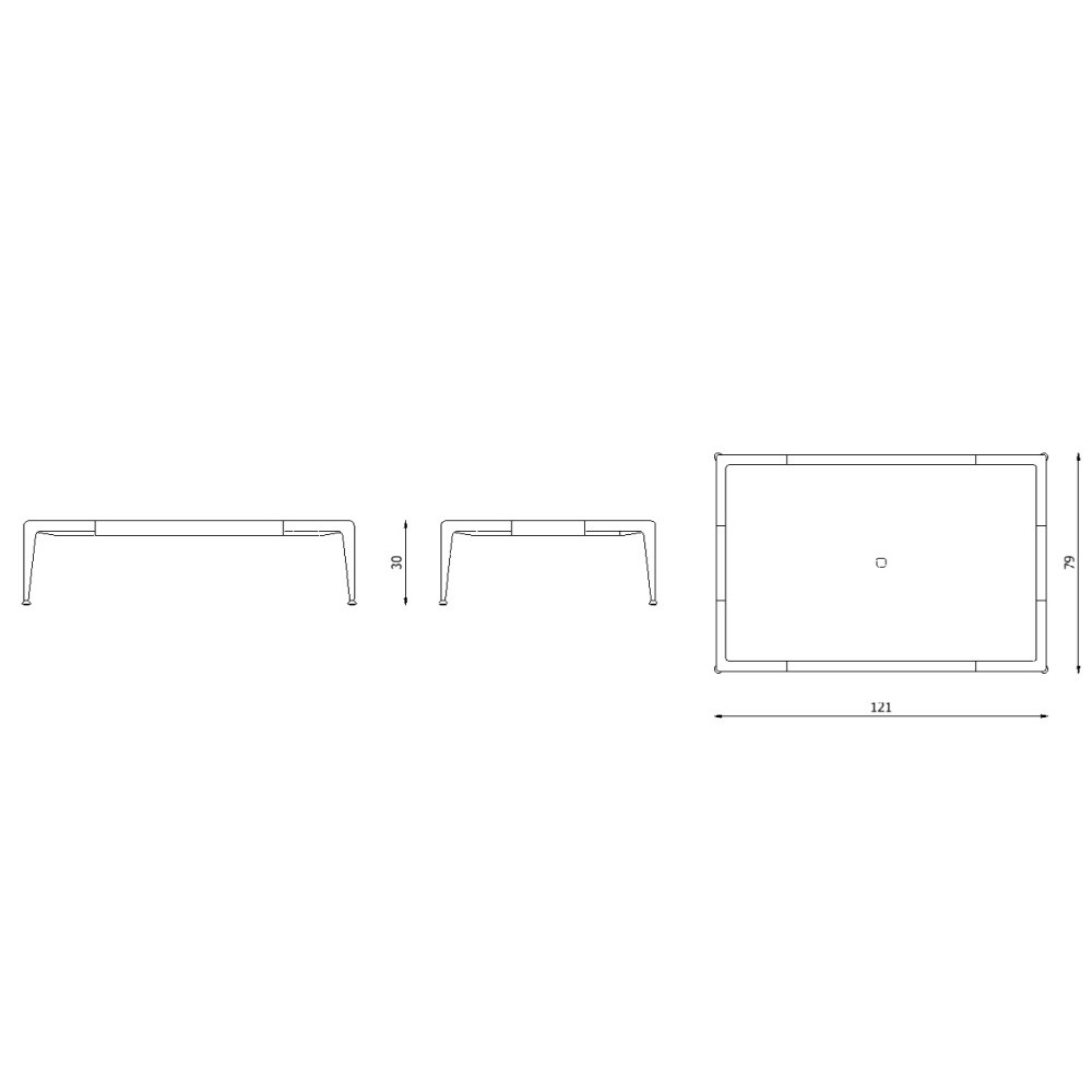 • Rectangular: 121x79x30h cm.