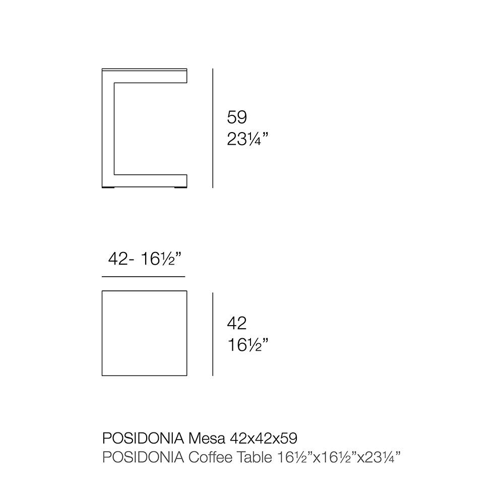 La mesa auxiliar de jardín Posidonia es una expresión fabricada en aluminio y solid core que fusiona formas limpias y modernas, que evocan una sensación de elegancia y estilo.
