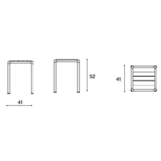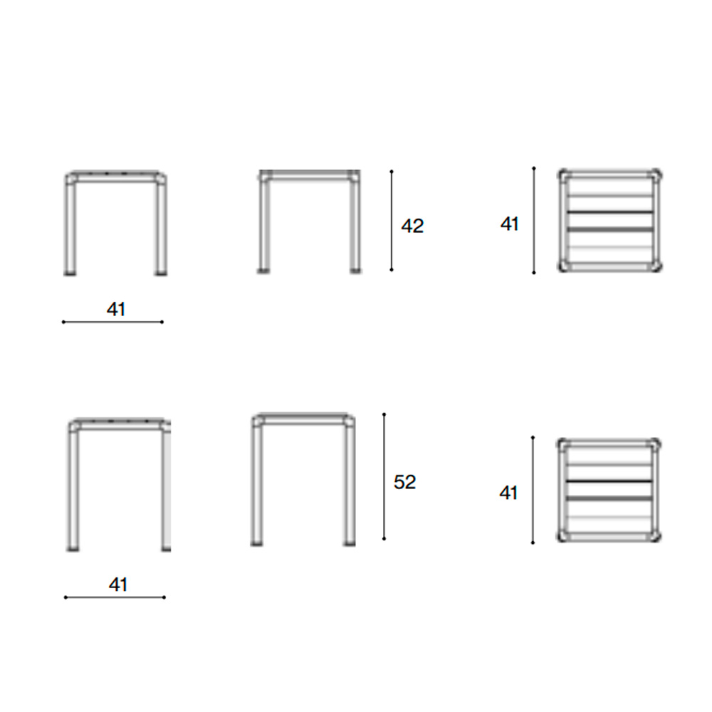 Mesa auxiliar cuadrada de aluminio lacado y sobre de teca. Diseño por Meda y Quincoces.