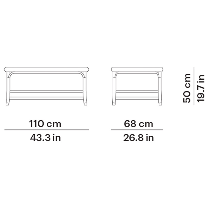 Mesa centro rectangular con fibra sintética SHINTOTEX. Dimensiones: 110x68x50h cm