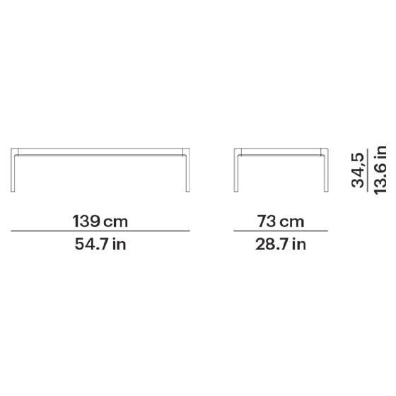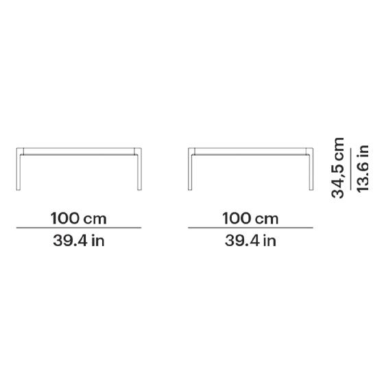 Mesa de centro rectangular o cuadrada en aluminio pintado. Diseño por Mario Ruiz.
