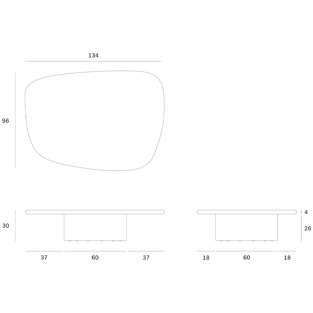 Mesa de centro para exterior con forma de guijarro en hormigón. Dimensiones: 134x96x30h cm.