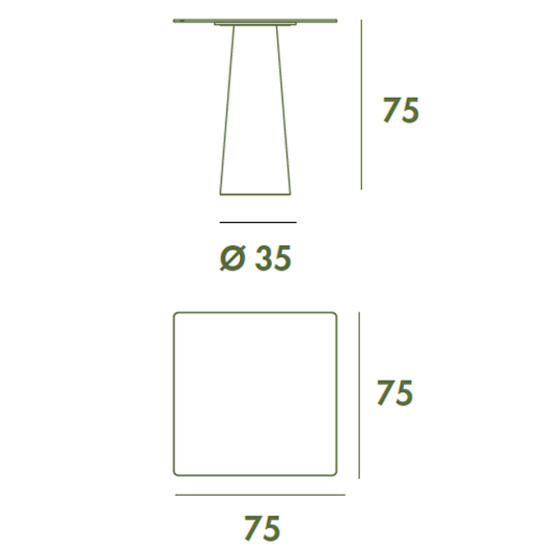 Mesa de bar exterior con sobre redondo o cuadrado de cerámica.