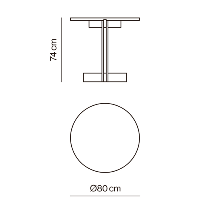 Mesa bistro redonda con estructura chapado en fresno. Dimensiones: Ø80x74h cm