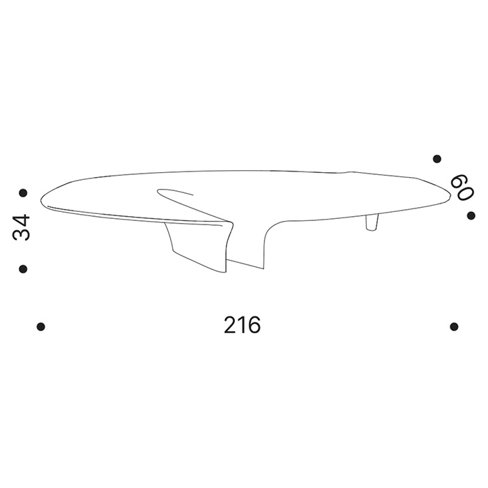 Mesa de centro escultural con estructura de poliuretano. Dimensiones: 216x60x34h cm.