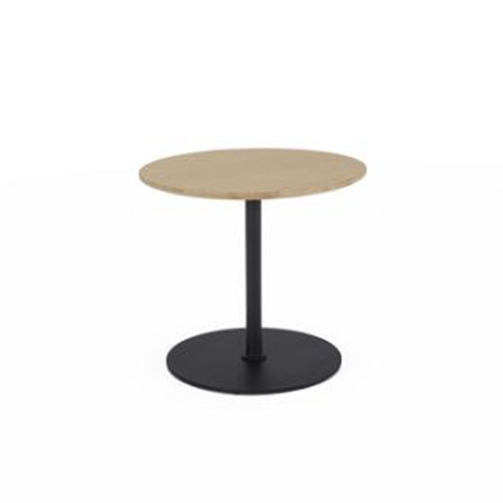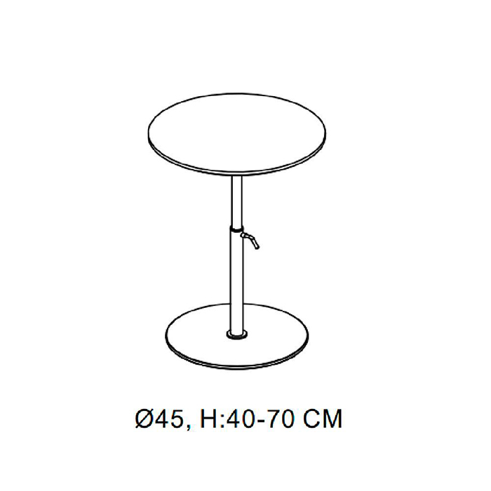 Mesa rincón elevable redonda base central en acero. Dimensiones: Ø45x40/70h cm.