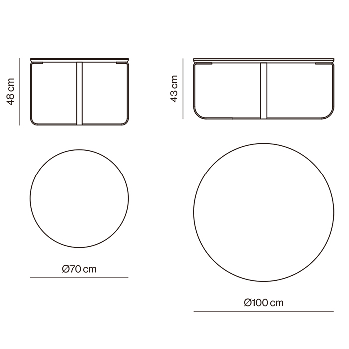 Su identidad se define por la intersección de sus componentes: una estructura metálica de cuatro patas conectadas en cruz, lacada en epoxi negro, que ofrece estabilidad y una estética sobria. De forma opcional, la estructura también puede lacarse en otros acabados, ampliando las posibilidades de personalización.