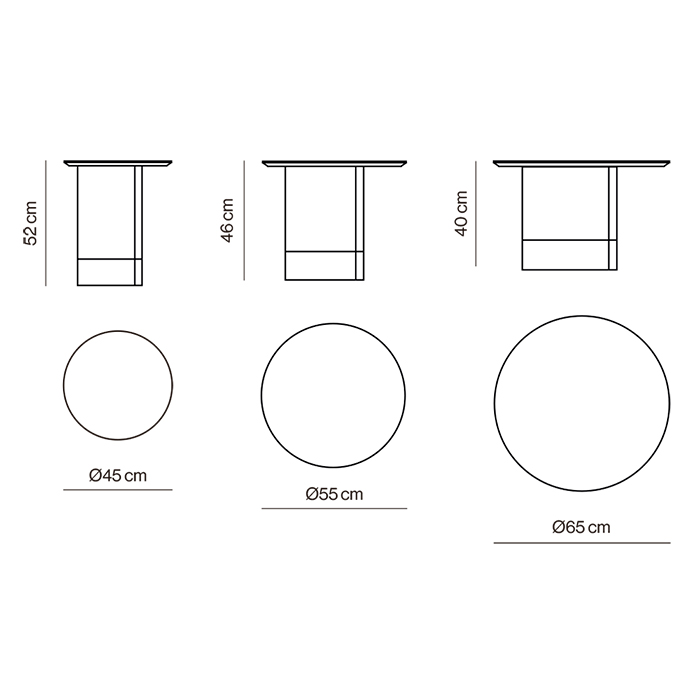 Los diseños están disponibles en tres medidas, funcionando bien los tres juntos en espacios de centro, como en solitario en cualquier rincón de la estancia.