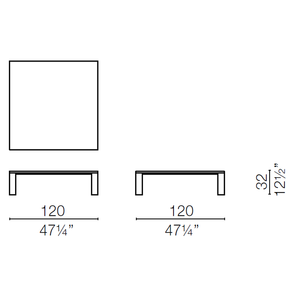 Mesa de centro rectangular de mármol. Dimensiones: 120x120x32h cm.
