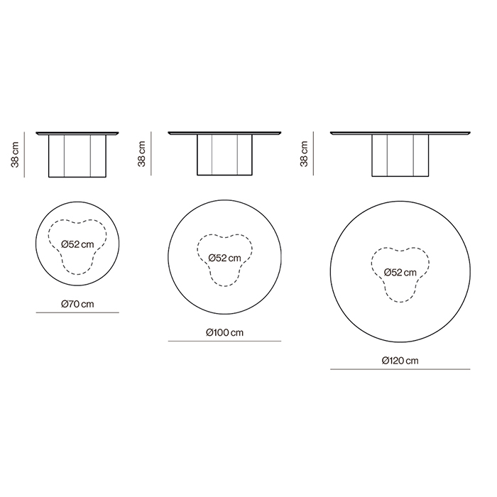 La singular base en forma de estrella suavizada se combina armoniosamente con una tapa circular, creando un equilibrio geométrico entre la organicidad del pie y la pureza del círculo. El proceso de fabricación es artesanal, asegurando la calidad y atención al detalle en cada pieza de la colección. Stella ofrece un amplio rango de acabados para la base y la tapa, permitiendo una personalización total. La base está disponible en laca, roble o fresno, mientras que la tapa se ofrece en laca, roble, fresno, cristal fumé y mármol blanco, negro o travertino. Con once colores de laca, cinco colores de roble y seis colores de fresno, Stella se adapta a cualquier interior, desde estilos limpios y elegantes hasta propuestas coloridas y divertidas. La opción de tapa de cristal se combina exclusivamente con una base lacada.