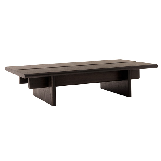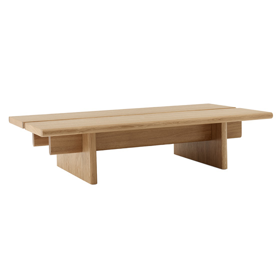 Mesa de centro fabricada en madera de roble. Diseñada por Estudio Oeo.