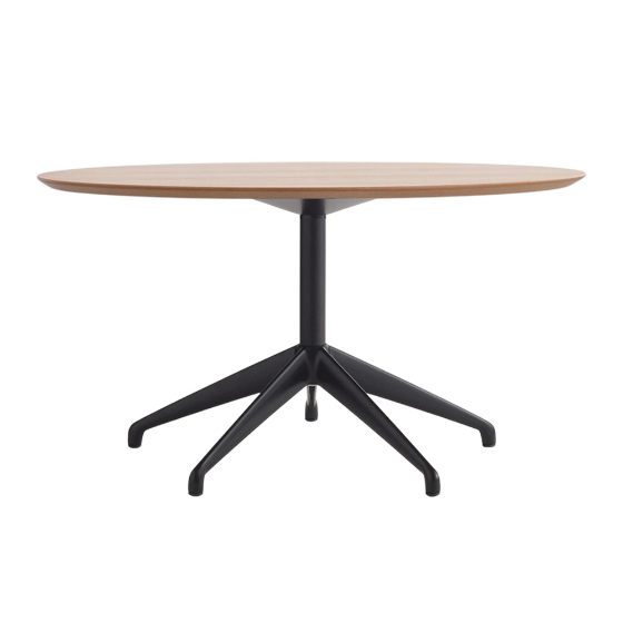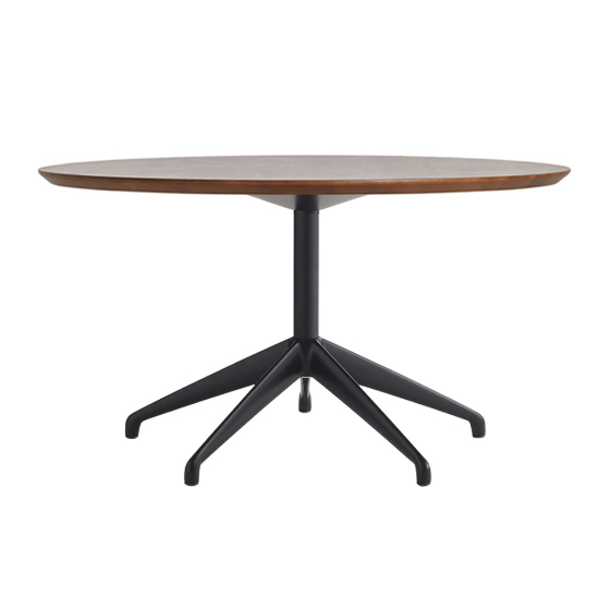 Mesa centro redonda con sobre de MDF o HPL y base de aluminio. Diseño por Jesús Gasca.
