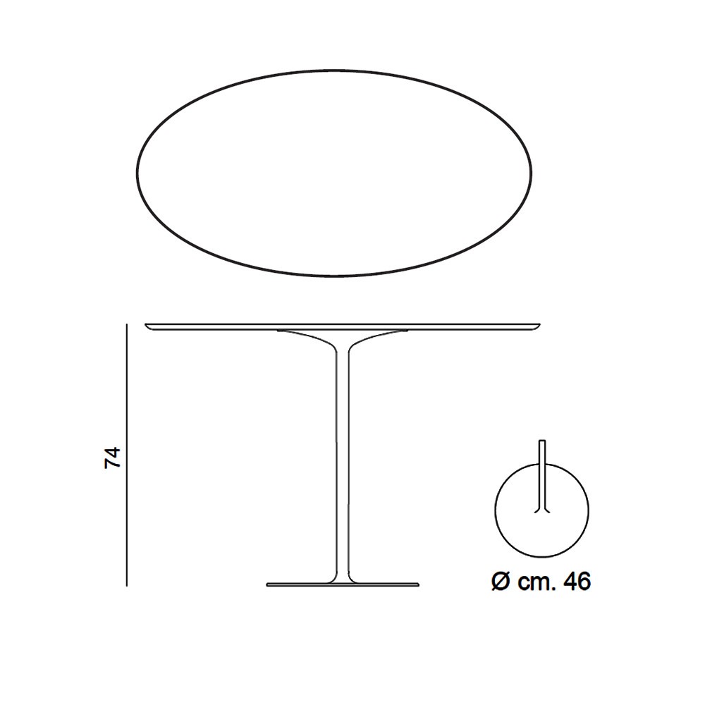 Esta mesa moderna de Arper tiene una base elaborada en acero redonda lacada blanco brillante o negro mate, combinado con un sobre ovalado de MDF texturado blanco (espesor 2,5 cm) o de laminado Fenix Ⓡ (espesor 2,6 cm).