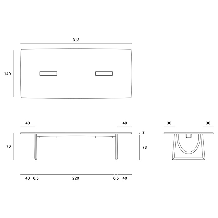 Mesa de reunión rectangular de roble macizo barnizado. Dimensiones: 313x140x76h cm.