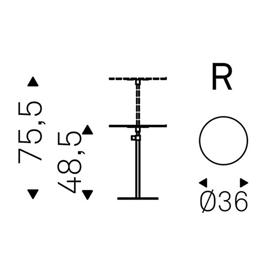 Mesa auxiliar regulable en altura con base, pata y sobre en acero. Diseño de Paolo Cattelan.